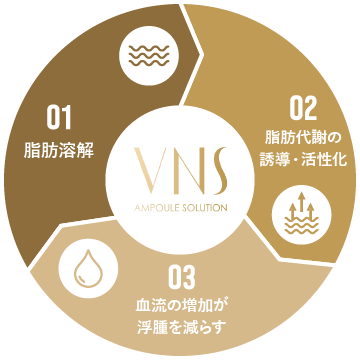 血流やリンパ腺の循環を促進させることで、分解した脂肪を急速に排出させるとともに、腫れや痛みを最小限にします。